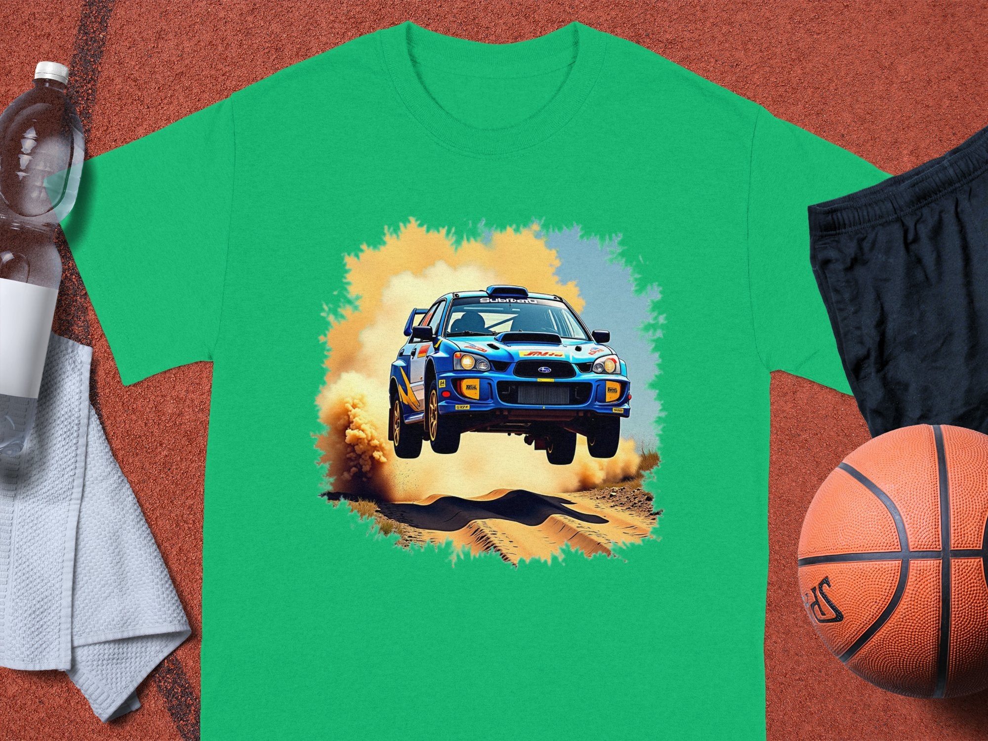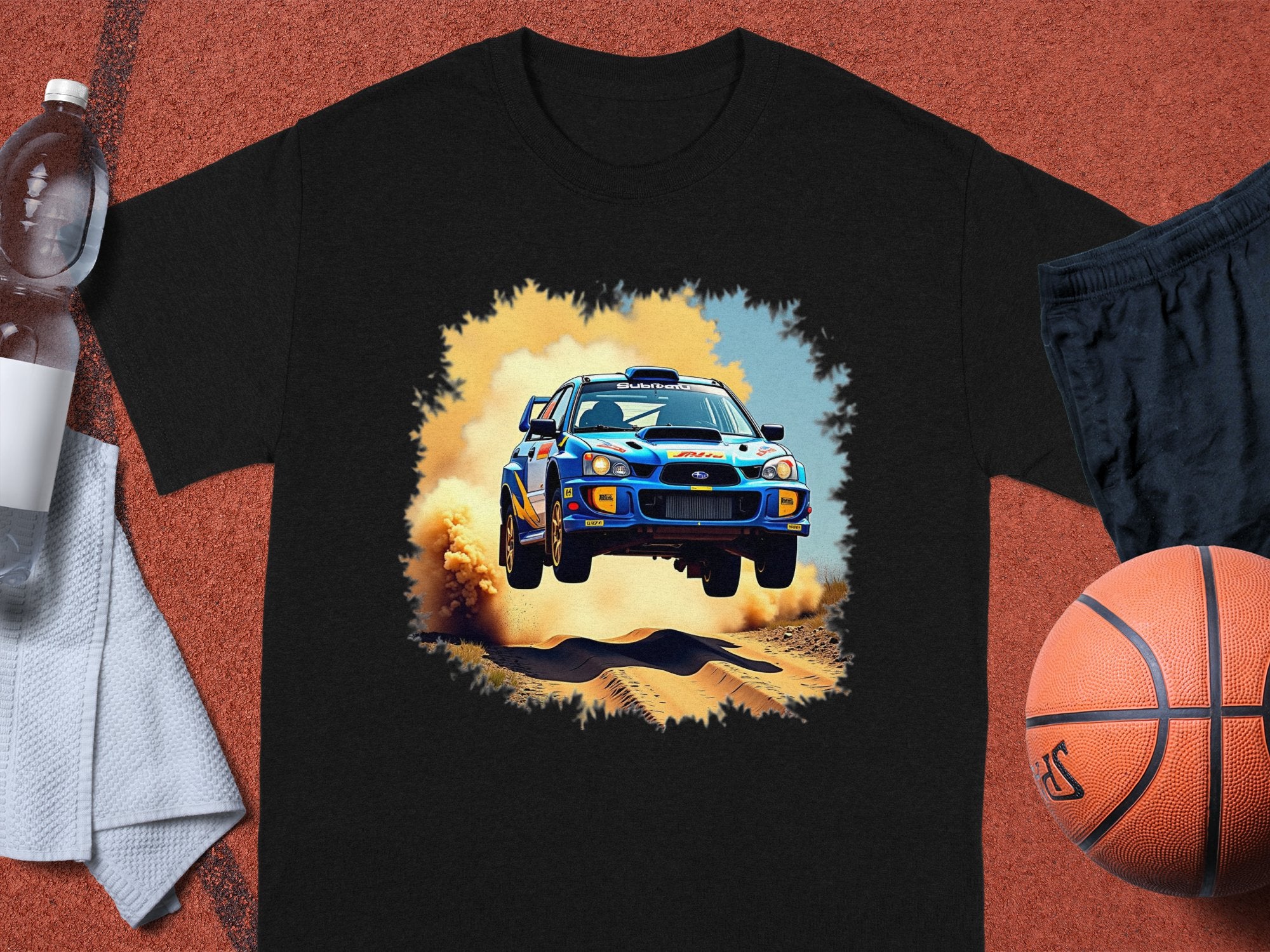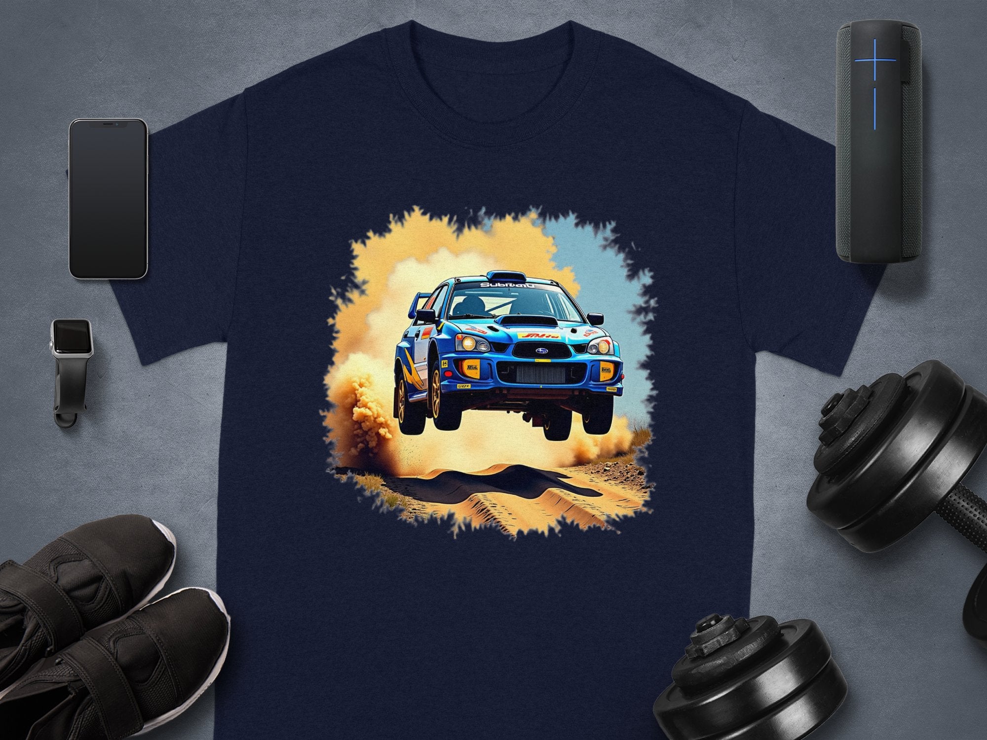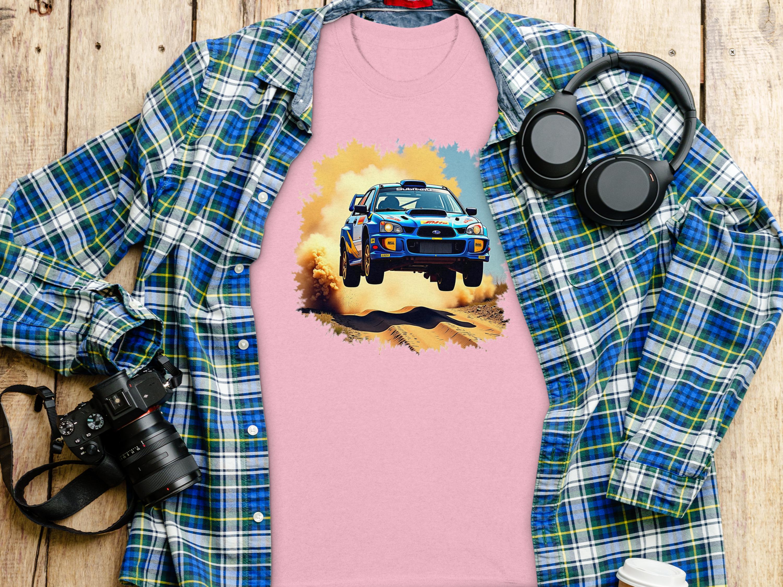 Rally Car Jump with Dust Cloud Graphic T-Shirts -