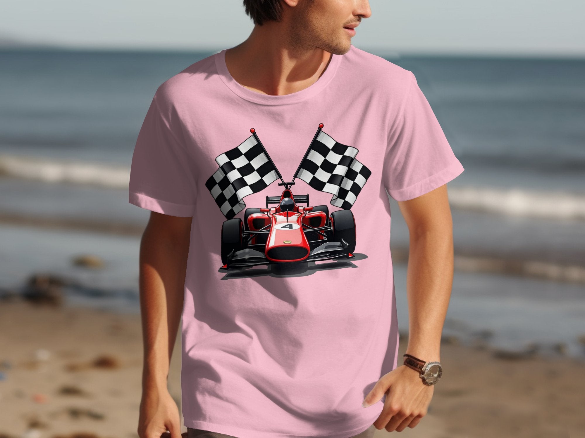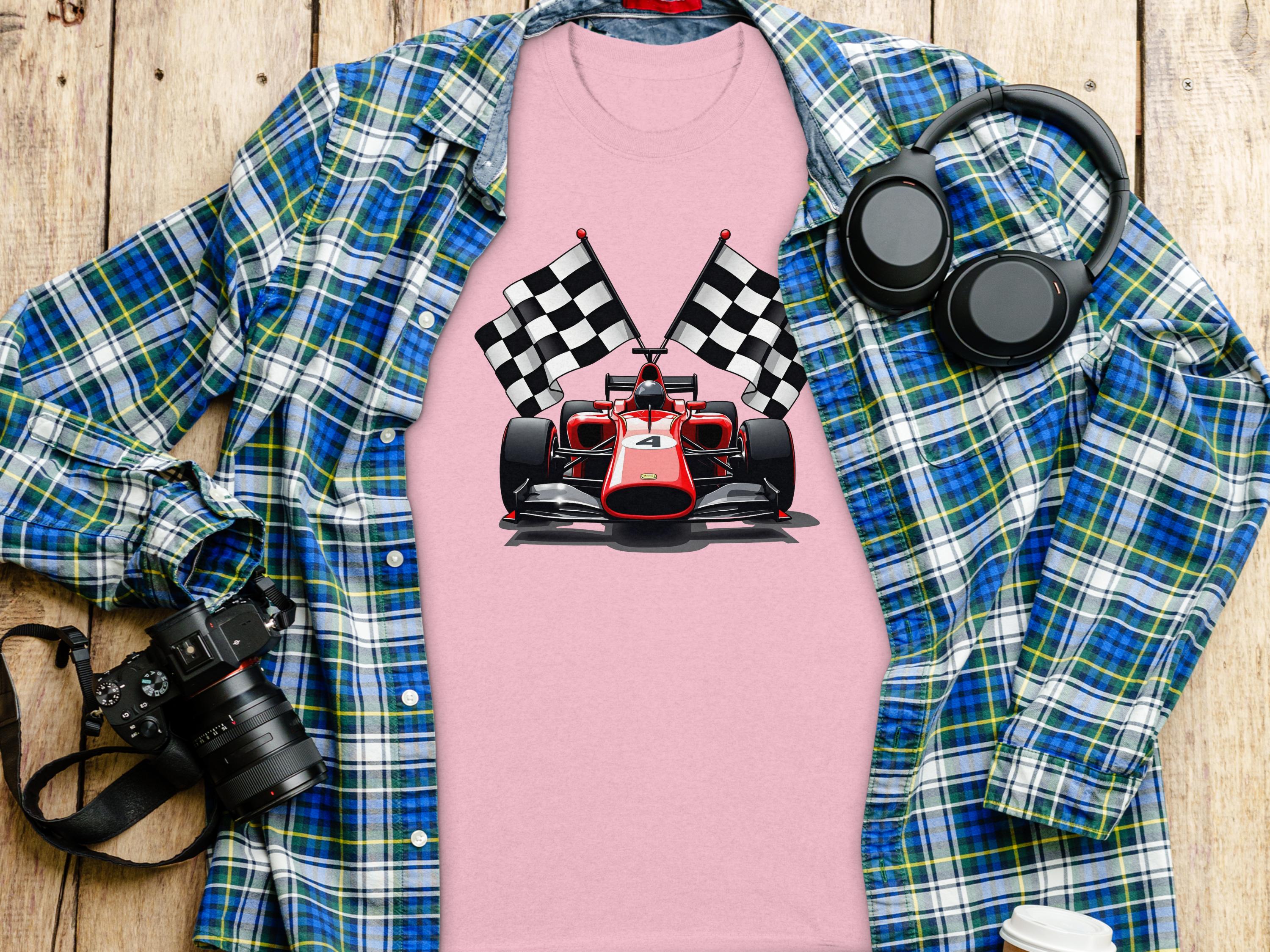 Racing Car with Checkered Flags Graphic T-Shirts -