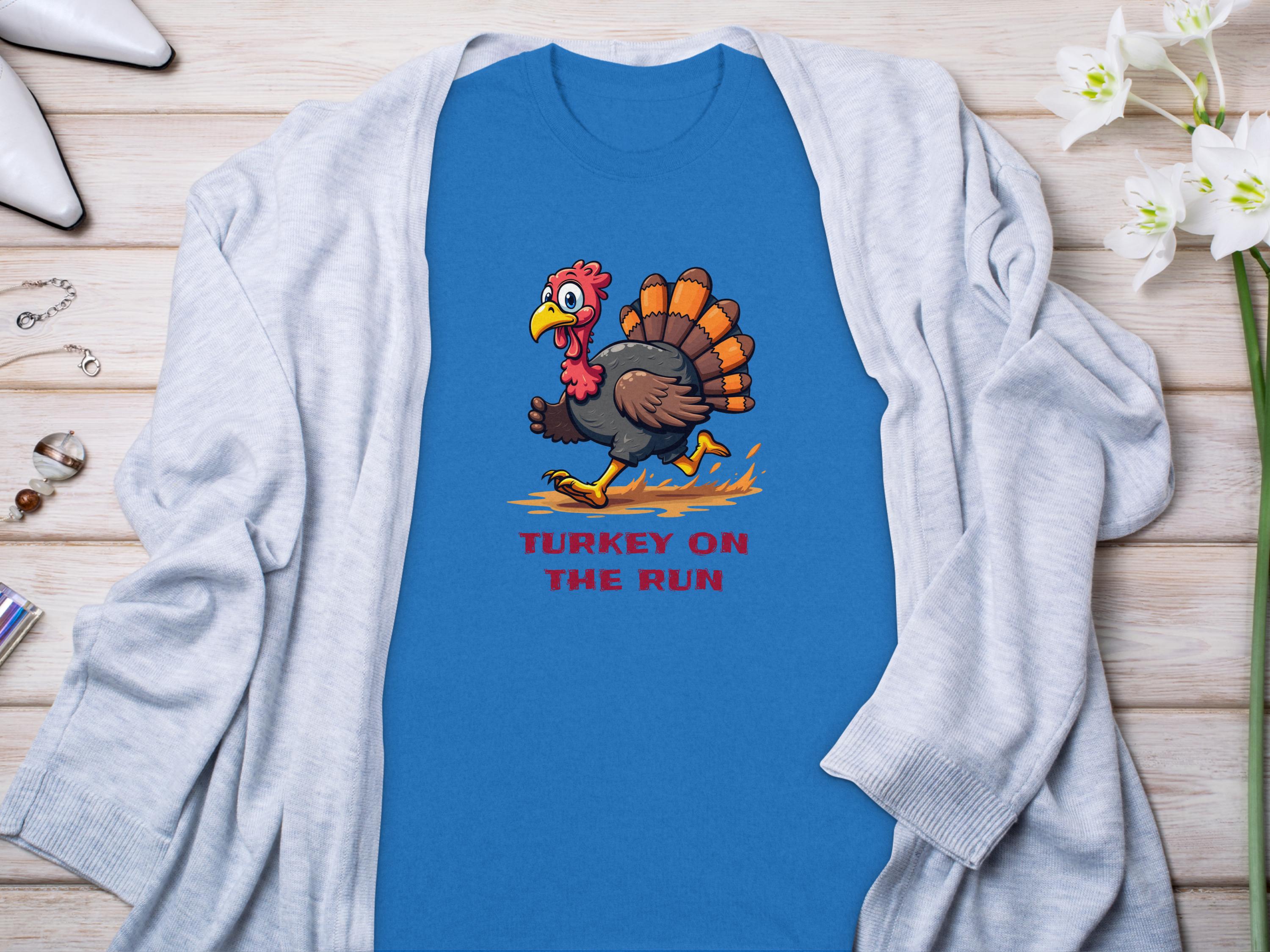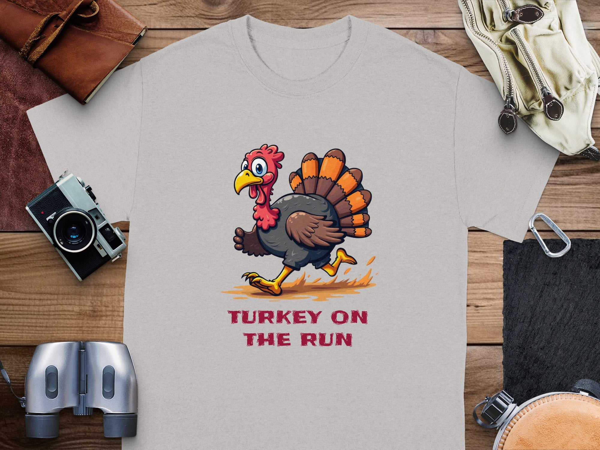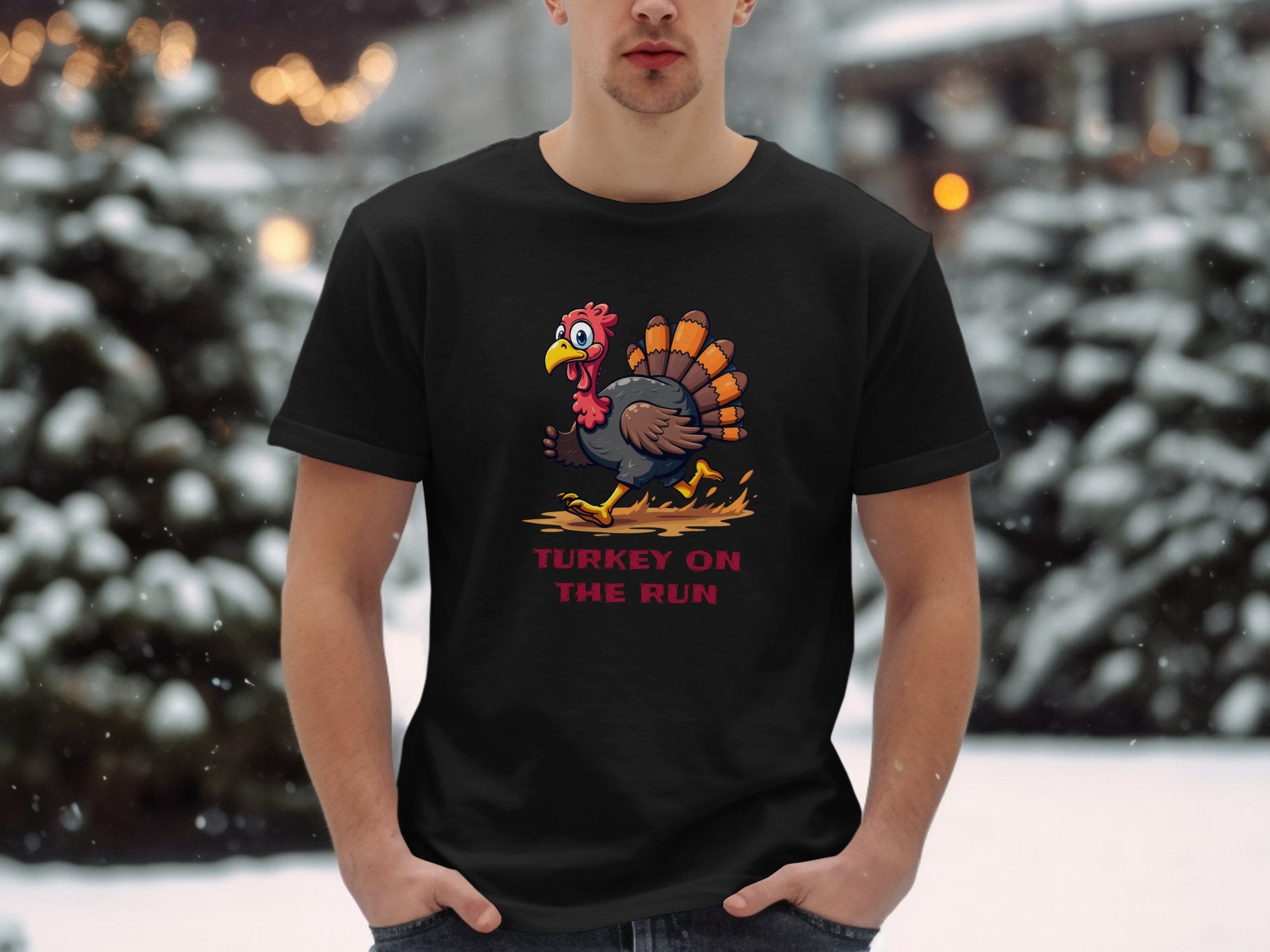 Get noticed with this funny turkey on the run graphic T-Shirt. Perfect for making a statement and bringing a smile to everyone's face.