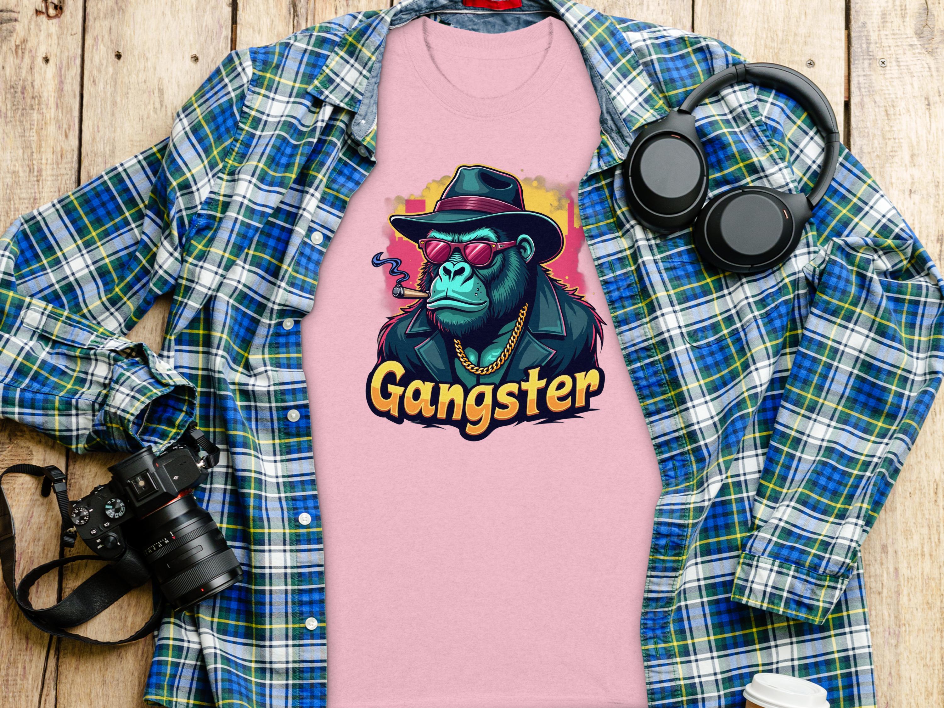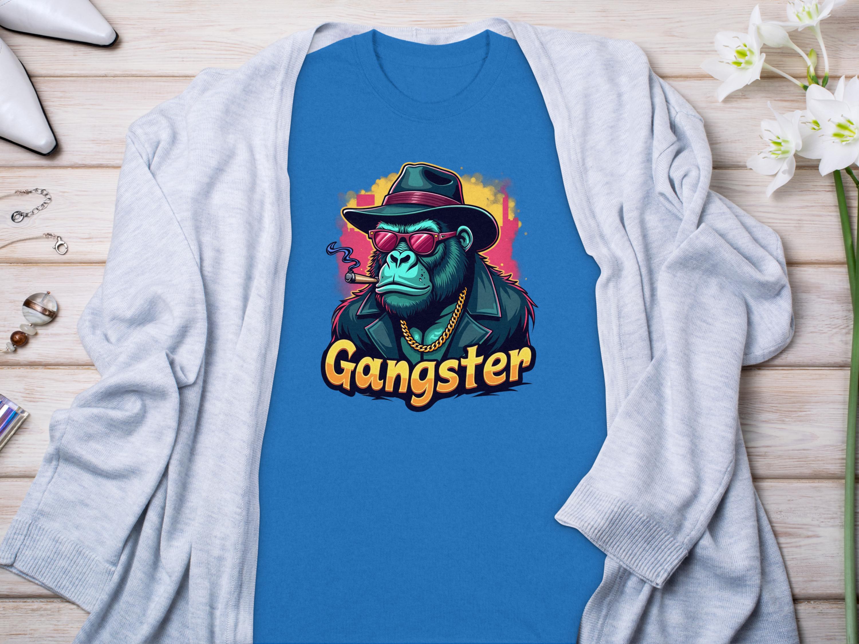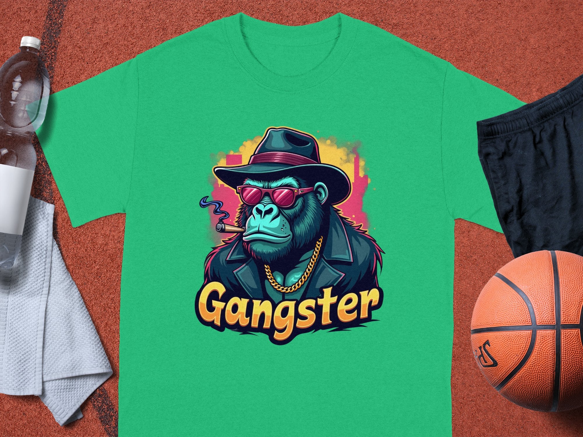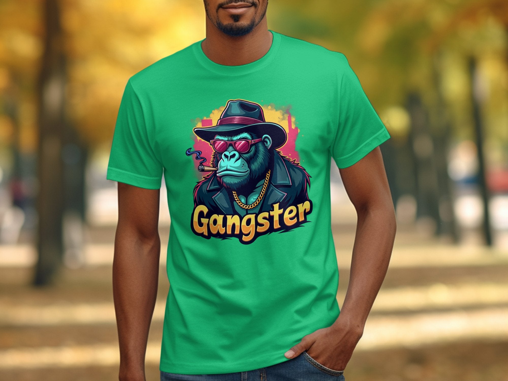 Show off your edgy side with this Gangster Gorilla T-Shirt featuring a unique cartoon gorilla with a hat sunglasses and a cigar in urban style.