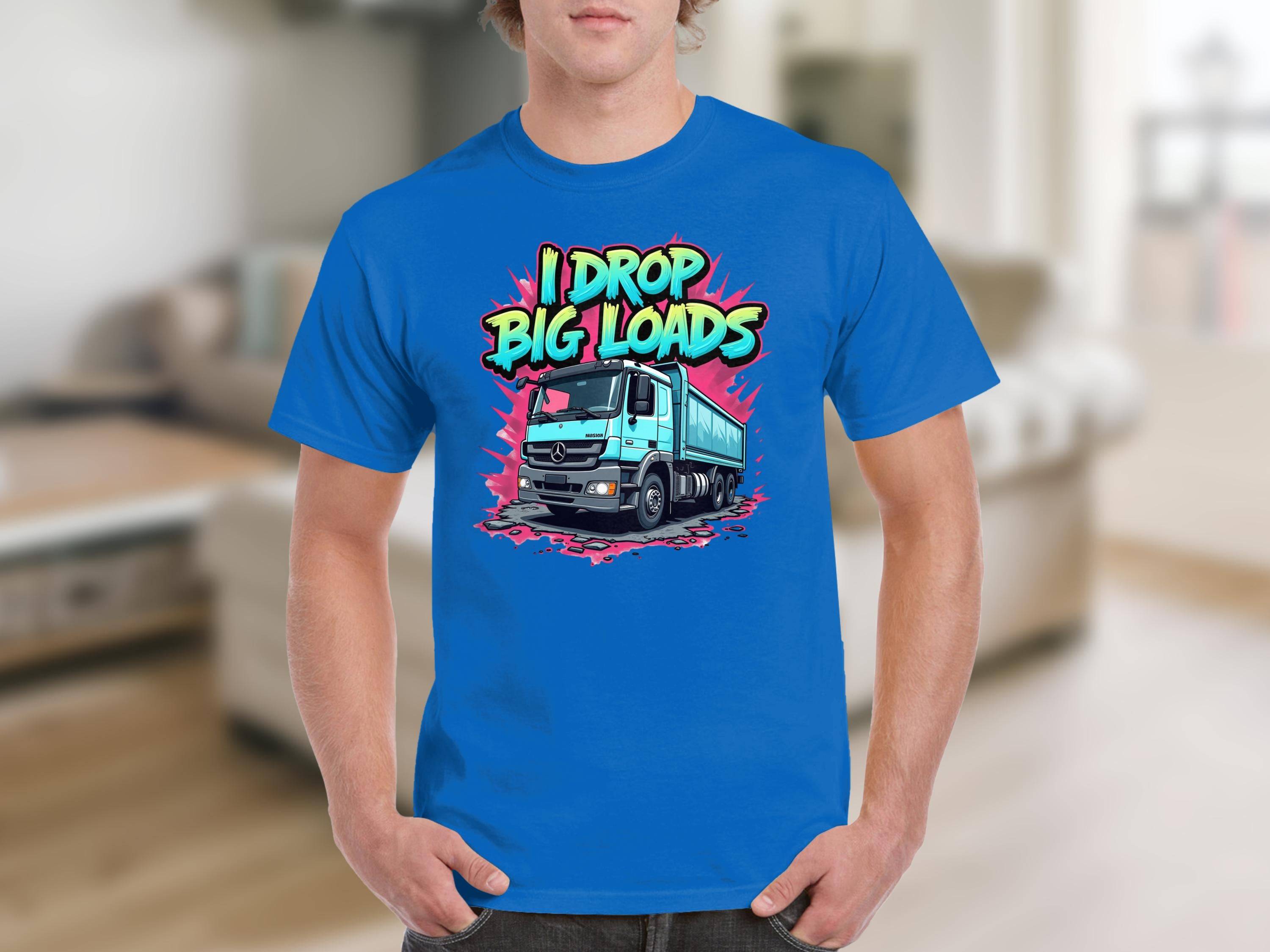 Stand out with this vibrant T-shirt showcasing an eye-catching truck graphic that adds a humorous touch to your casual look.