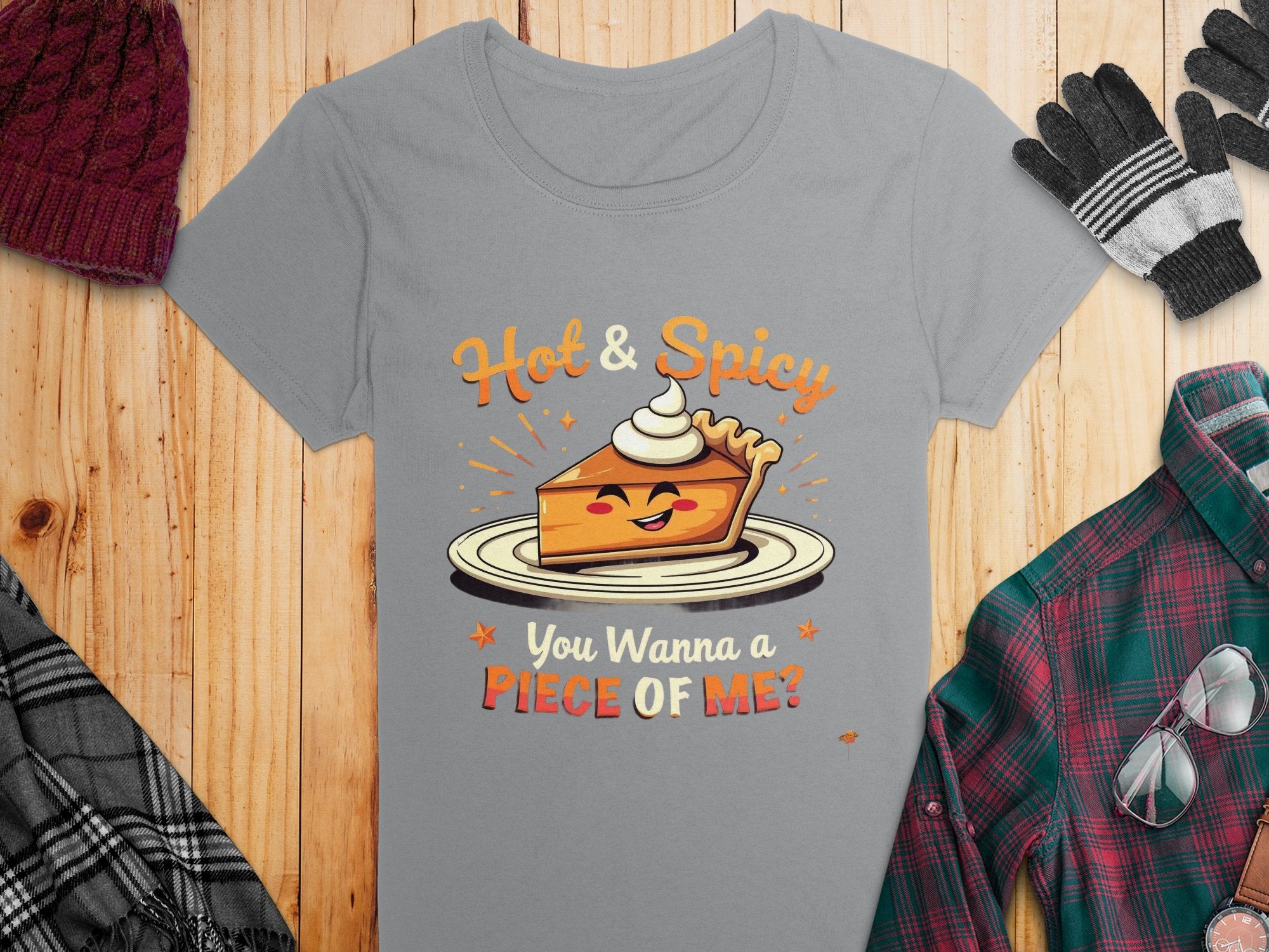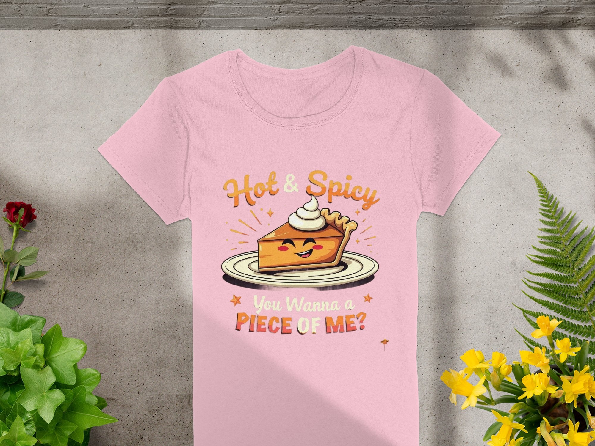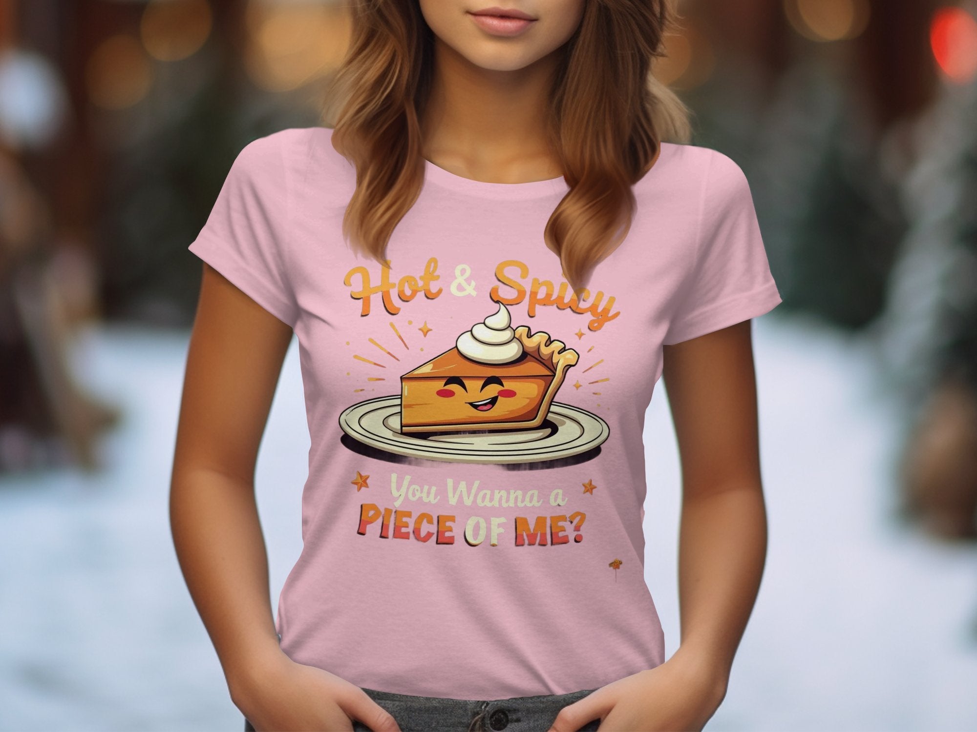Bring a smile to everyone's face with this fun and quirky T-shirt featuring a cheeky pie slice. Perfect for casual outings and light-hearted gatherings.