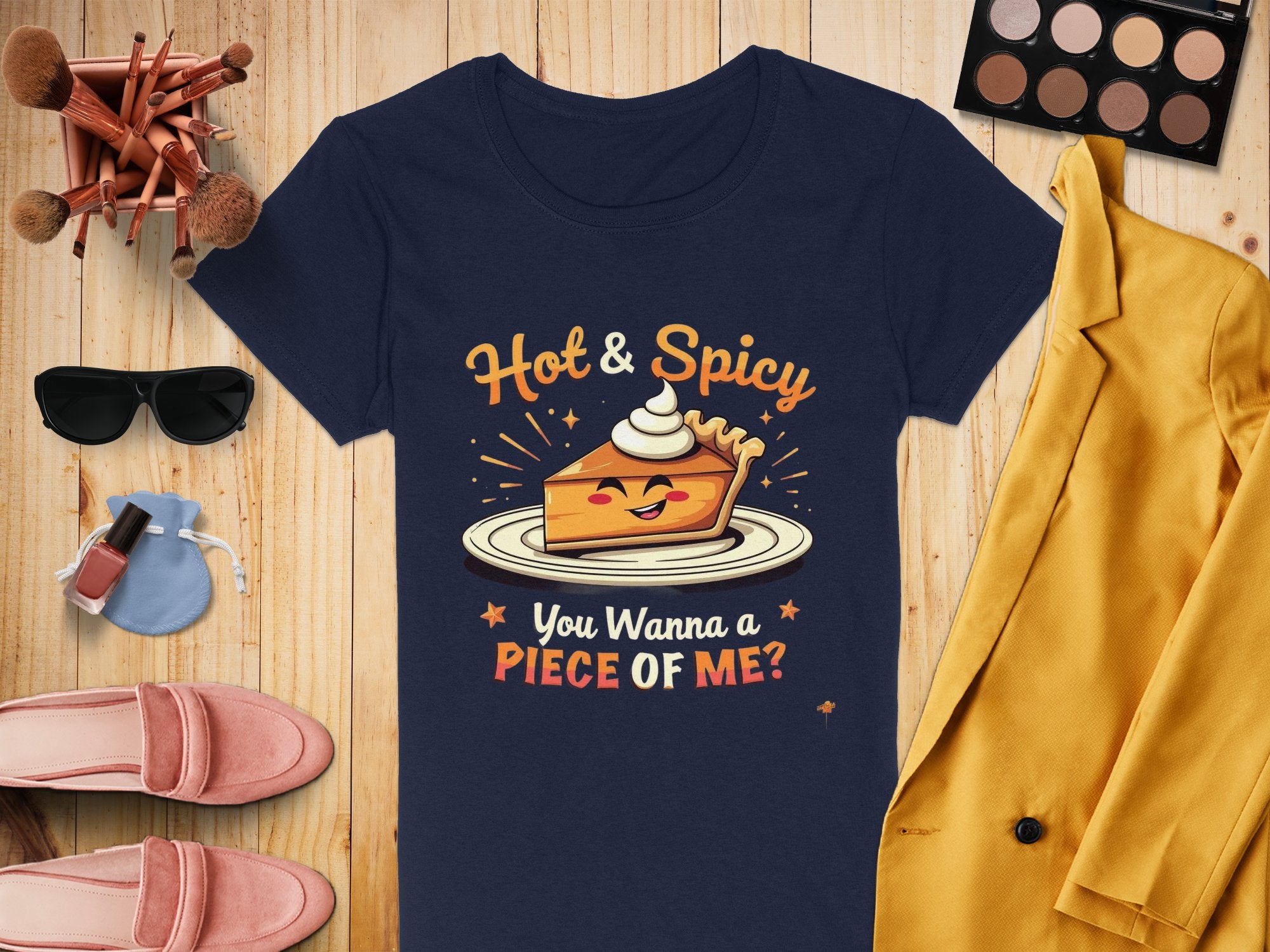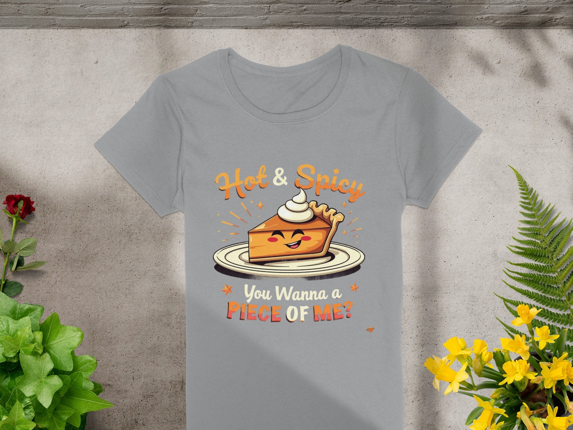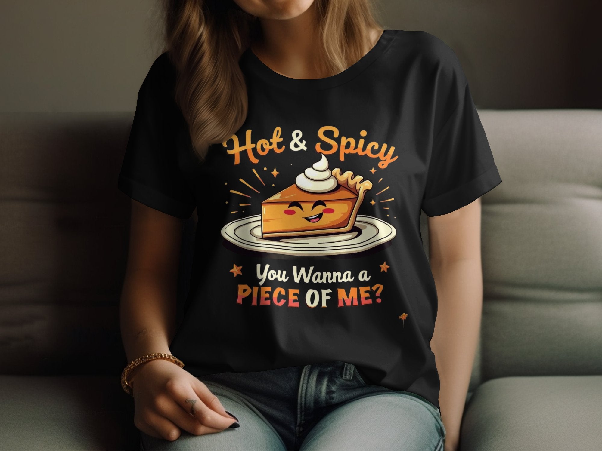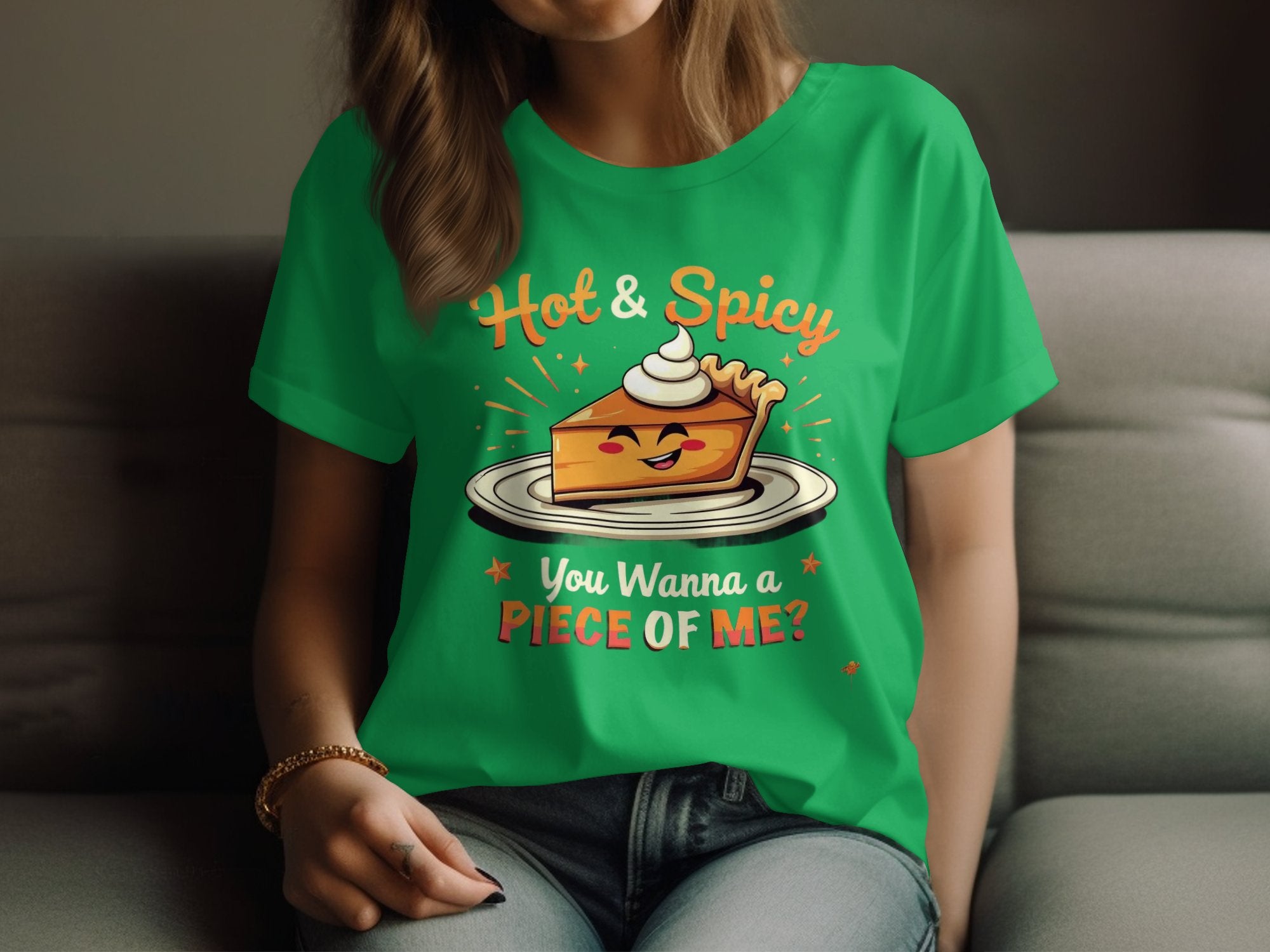 Bring a smile to everyone's face with this fun and quirky T-shirt featuring a cheeky pie slice. Perfect for casual outings and light-hearted gatherings.