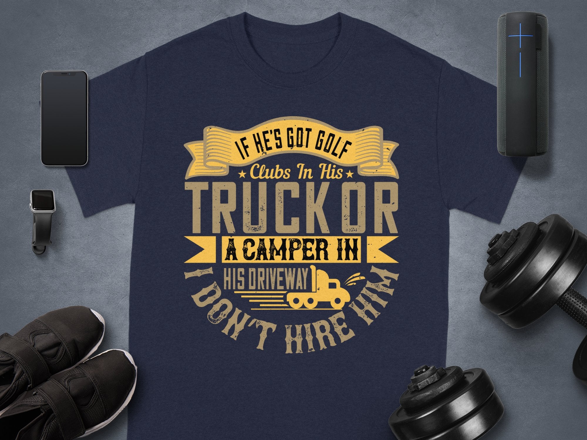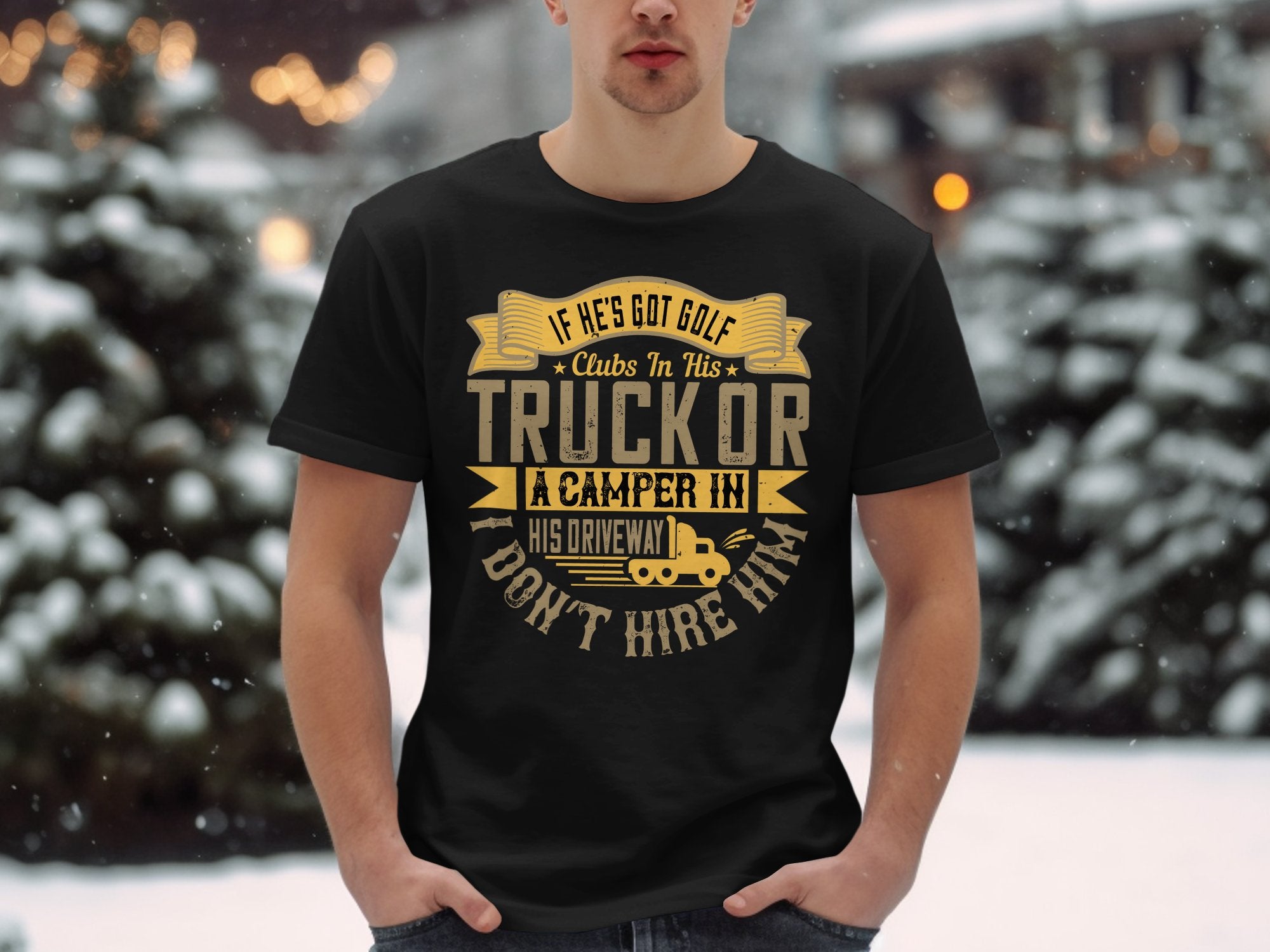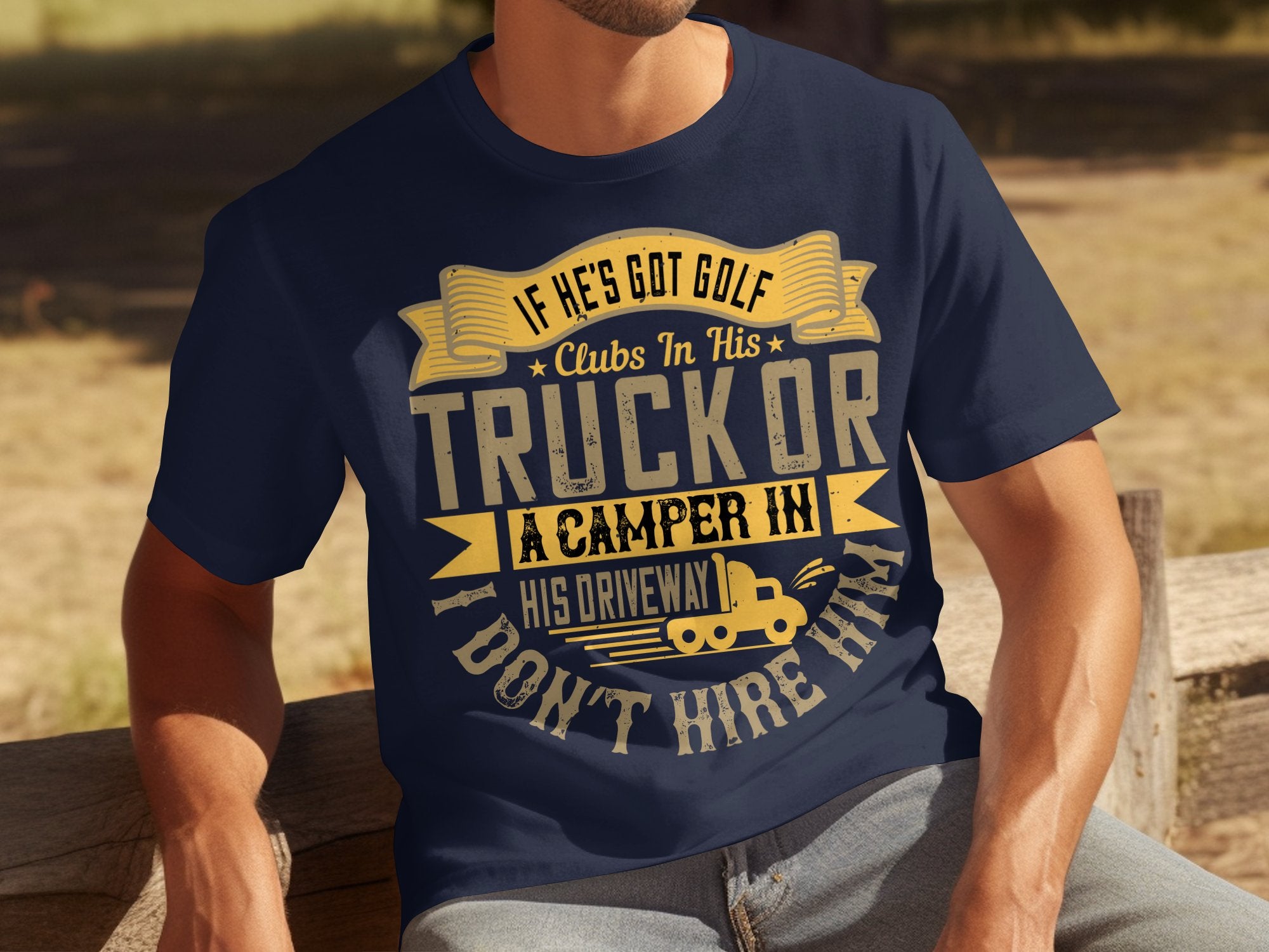 Unique T-Shirts featuring a funny quote about golf clubs in his truck or a camper in his driveway Perfect gift for those with humorous taste