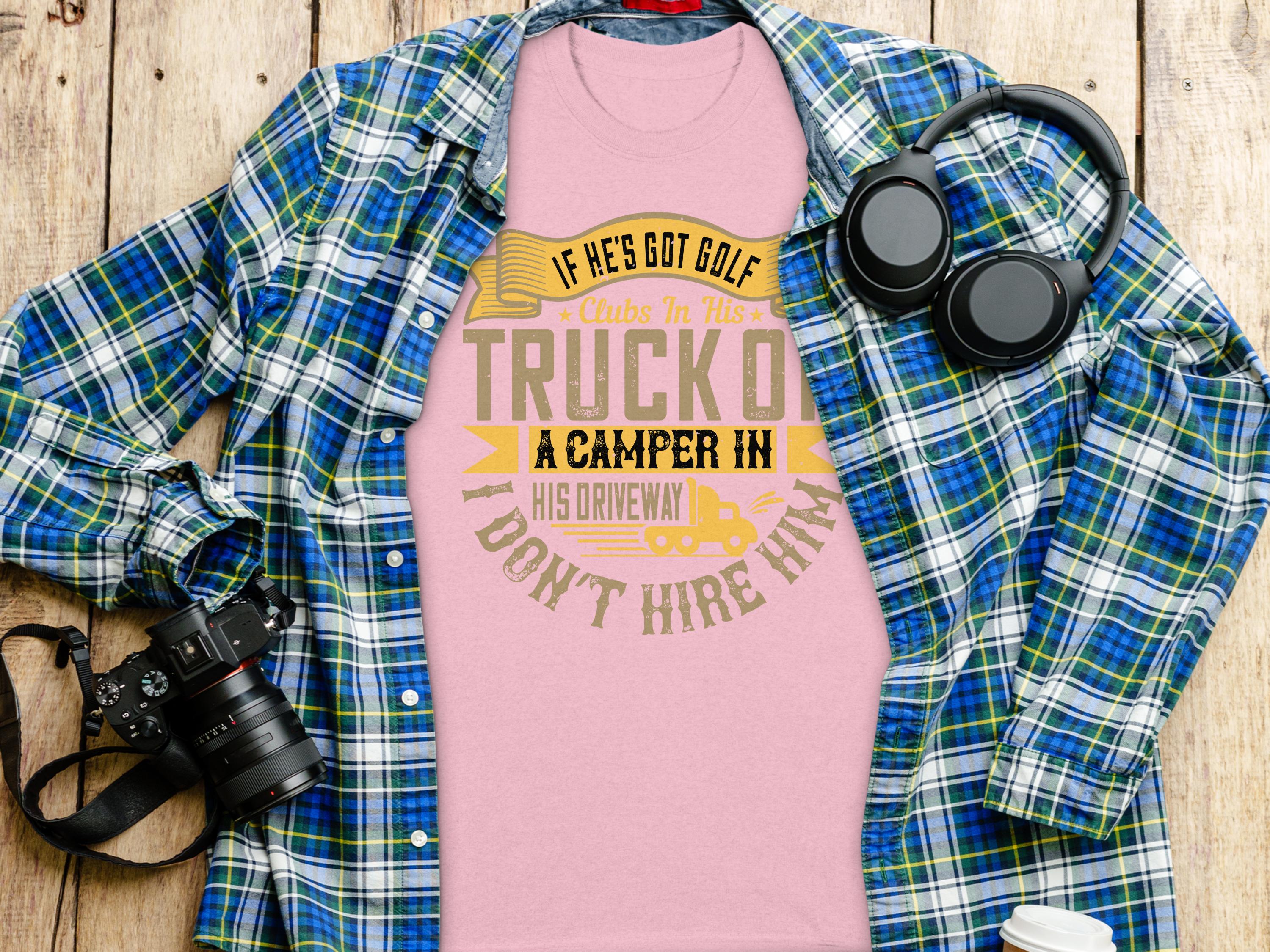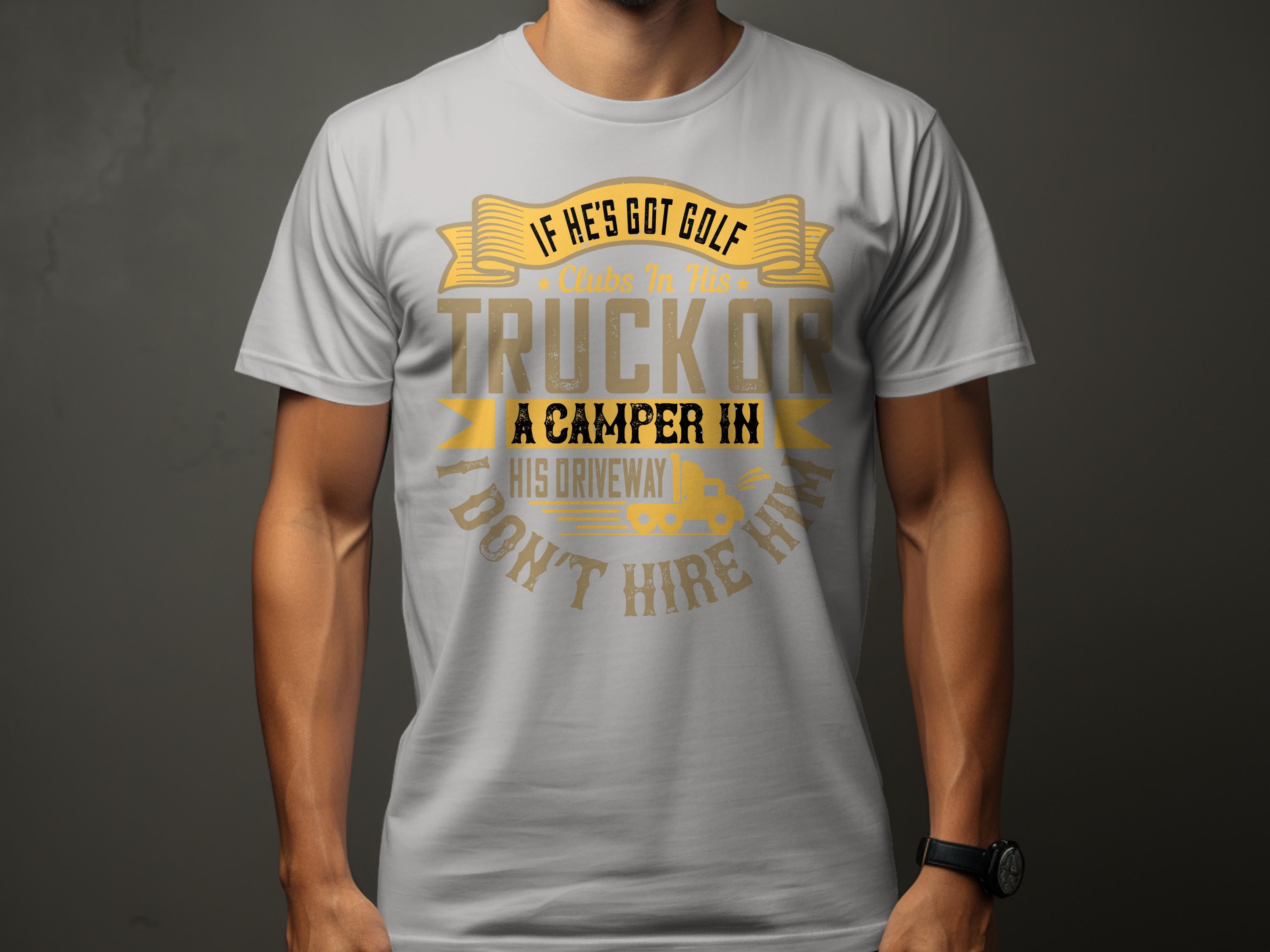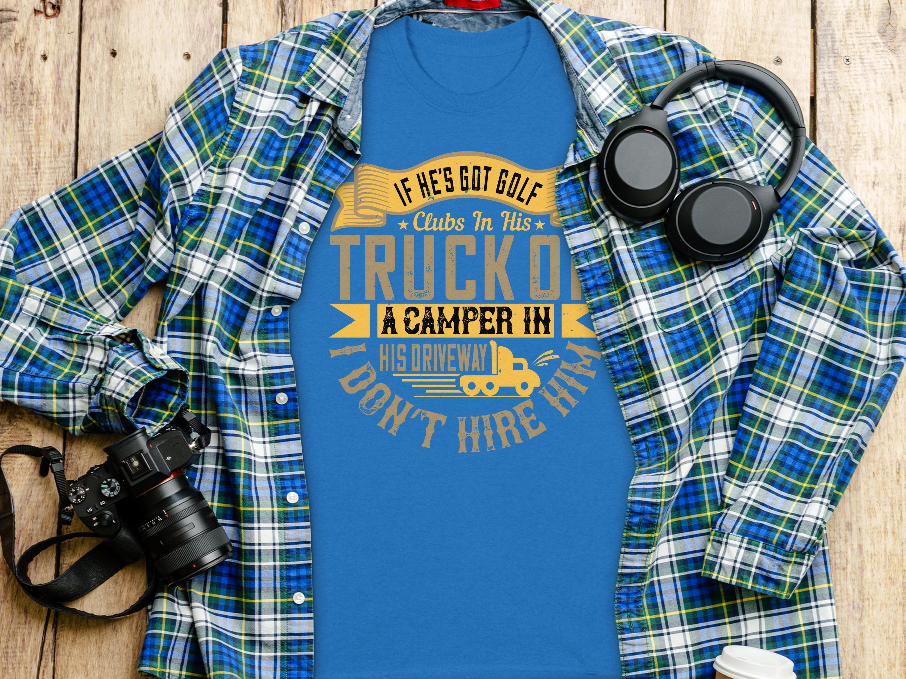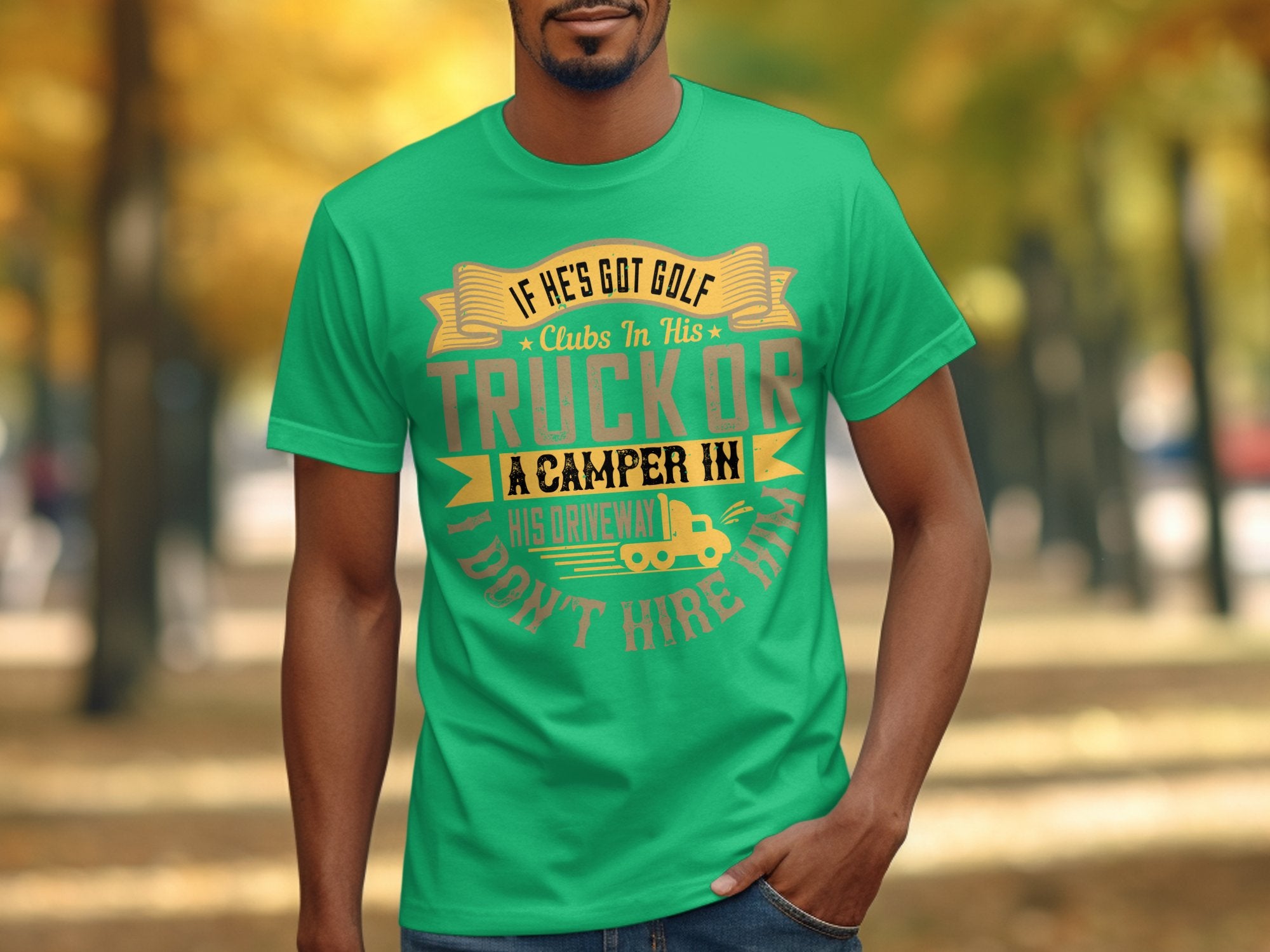 Unique T-Shirts featuring a funny quote about golf clubs in his truck or a camper in his driveway Perfect gift for those with humorous taste