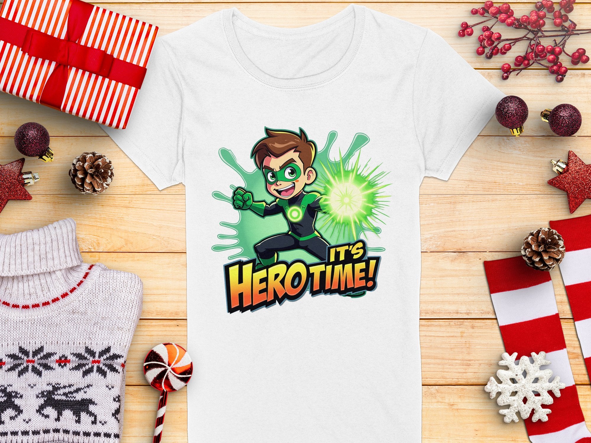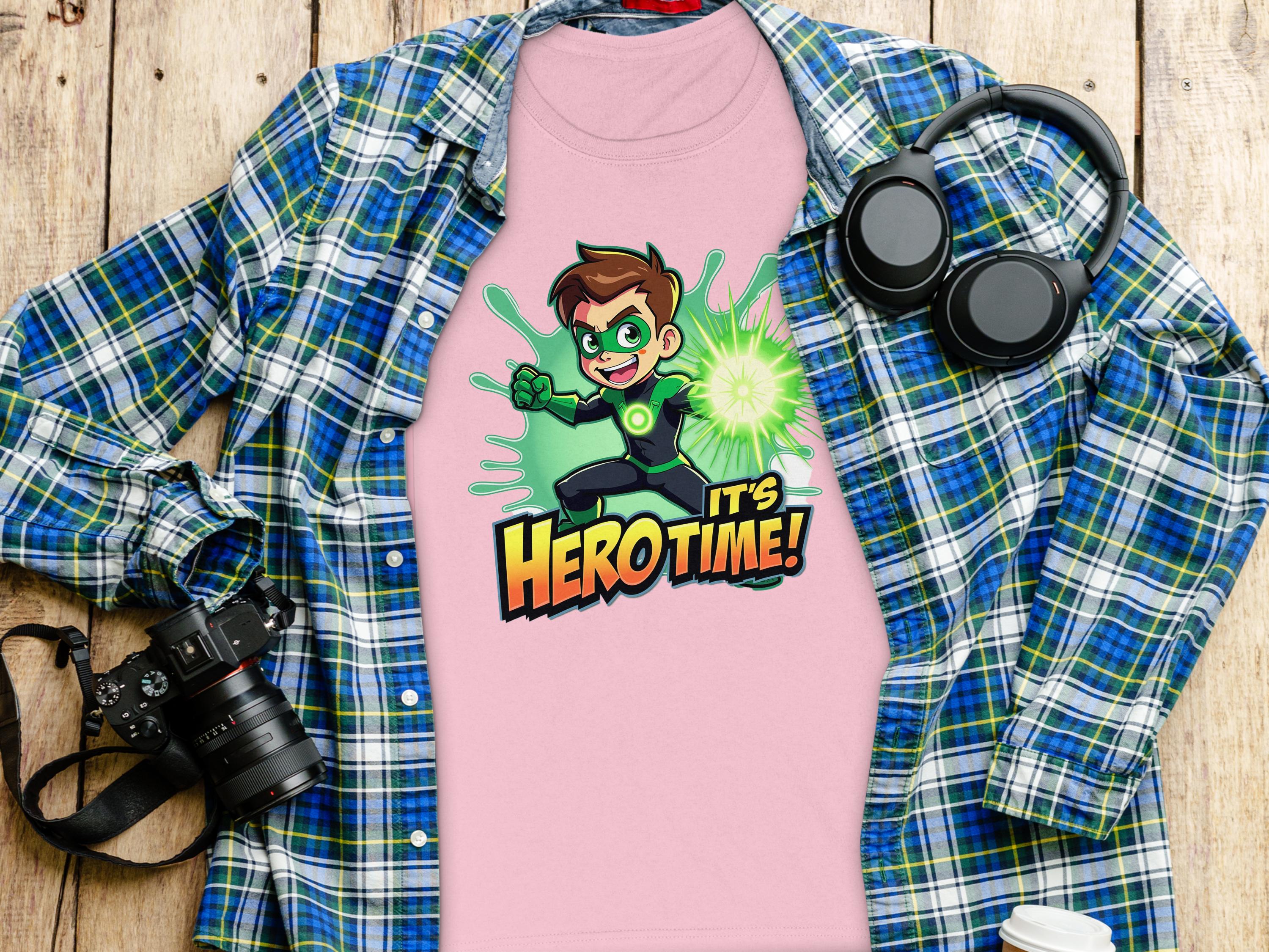 Brighten your child's day with this green superhero design. Perfect for young heroes who love adventure. Fun and colorful addition to any wardrobe.