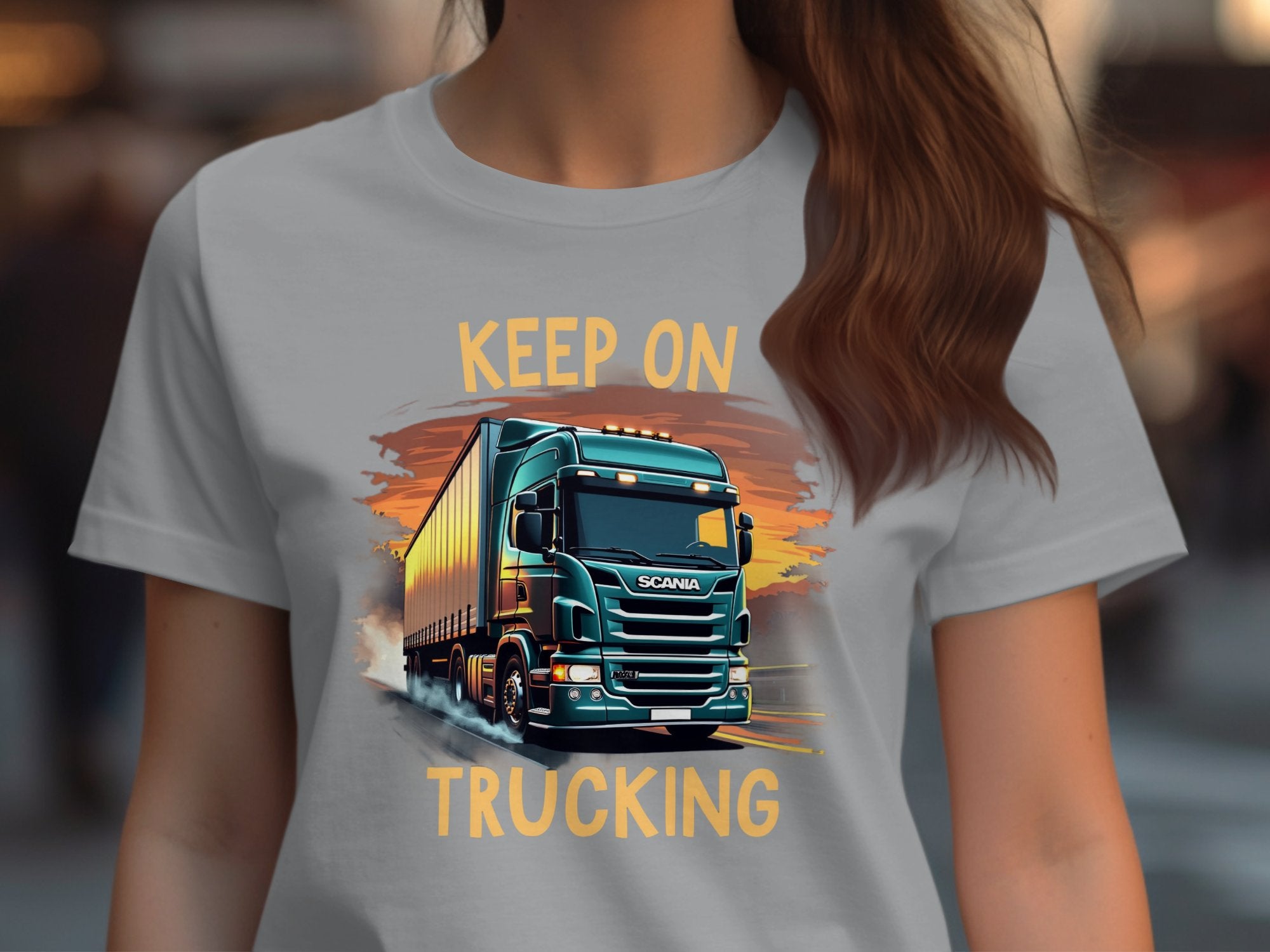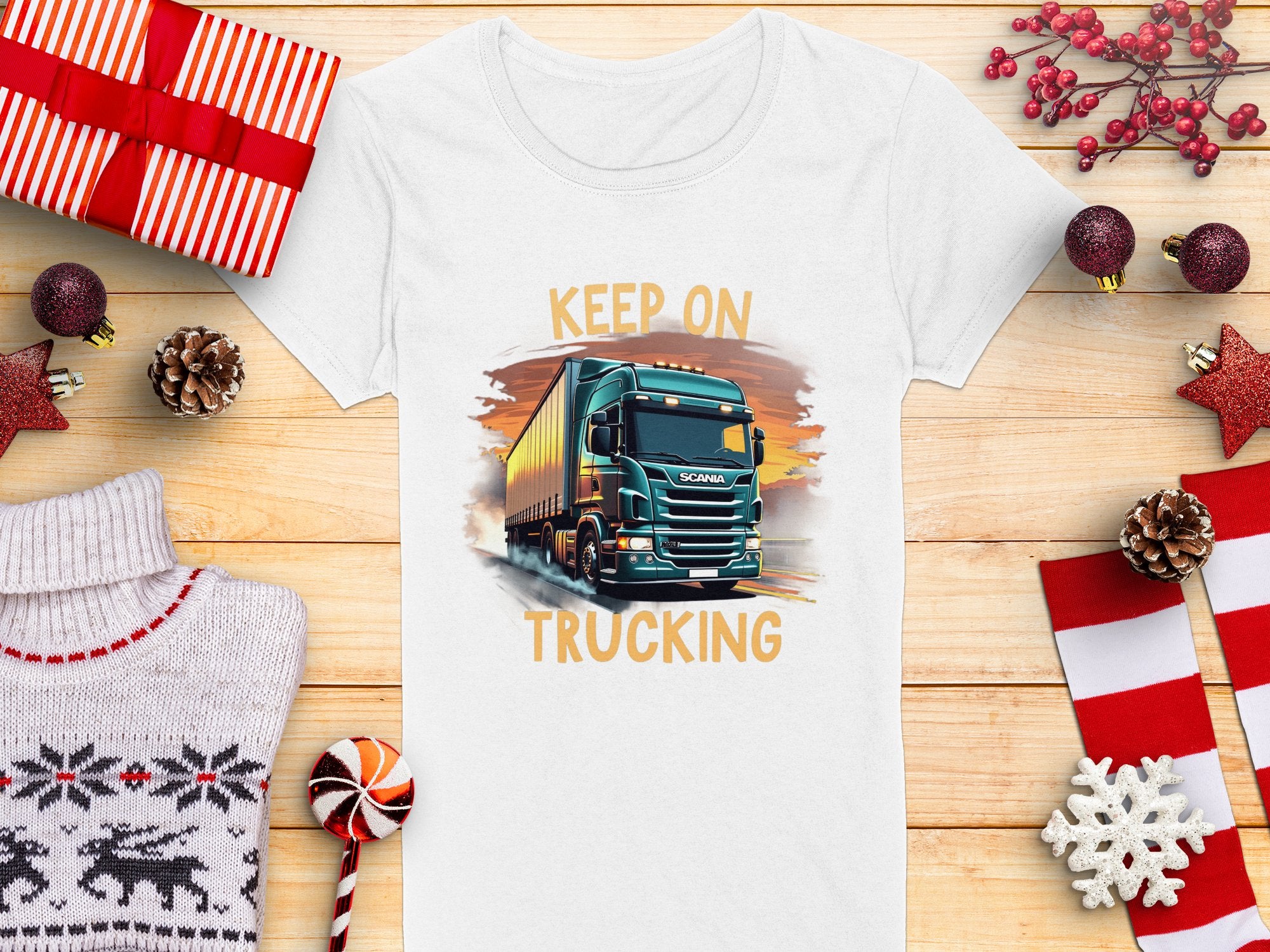 Embrace your love for trucks with our Keep on Trucking T-Shirts featuring a vibrant truck graphic that stands out. Perfect for trucking enthusiasts.